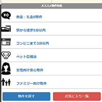 | ・エリア | ・物件種別(賃貸アパート、売り家など) |